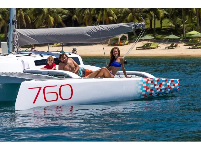 Featuring the same high-volume reverse-sheer floats and updated beam design as the standard 760, the 760R delivers exceptional power and stability under sail, with increased righting moment and responsive handling. The defining difference lies in its expansive cockpit layout, which prioritizes crew ergonomics, sail handling, and social sailing over interior volume. With space to move freely and efficiently, the cockpit becomes the heart of the boat—perfect for high-energy day sailing, racing, and performance-focused cruising.